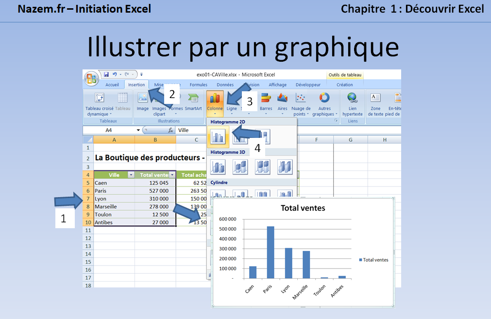 - Types des graphiques : courbes, histogrammes, secteurs...